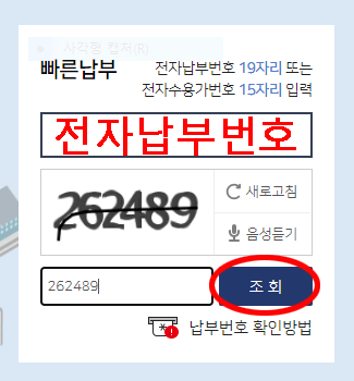 그리고 하단의 자동입력방지문자를 입력한 후 [조회]하기를 눌러준다.