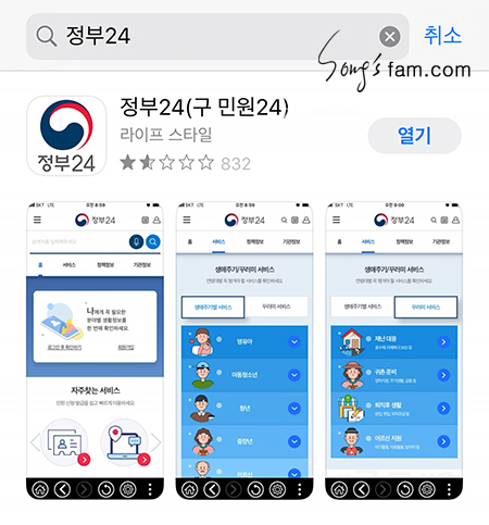 앱스토어 혹은 플레이스토어 등에서 정부24앱을 검색한다.