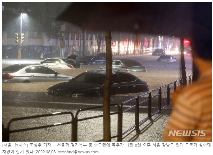 수도권의 80년만의 기록적인 폭우로 자동차 침수 피해가 많이 발생하였다.