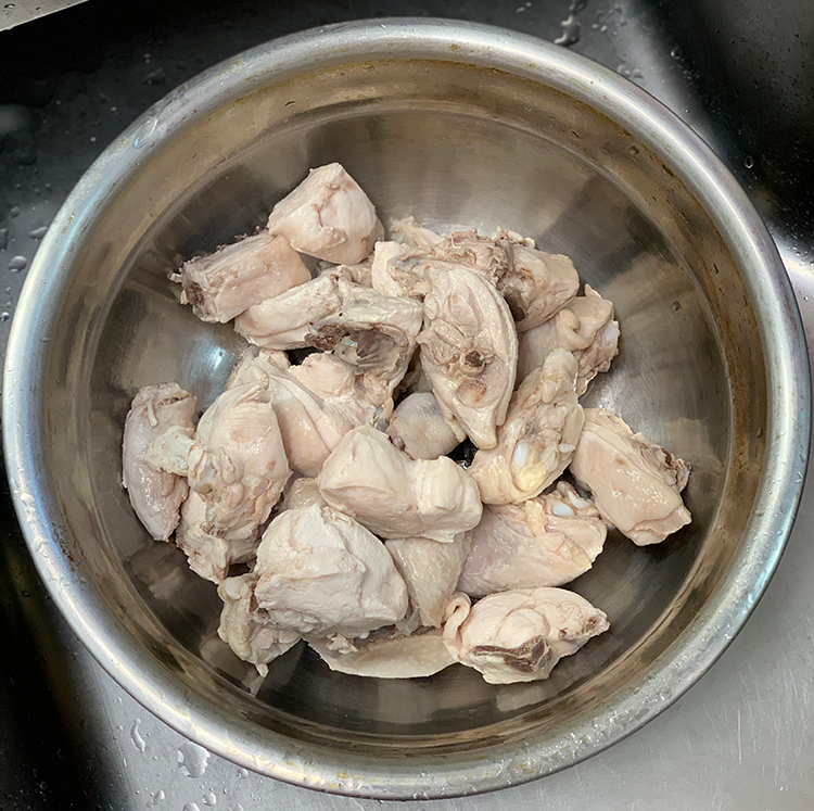 닭의 표면이 하얗게 익고 나면 물을 버리고 깨끗한 물에 씻어준다.