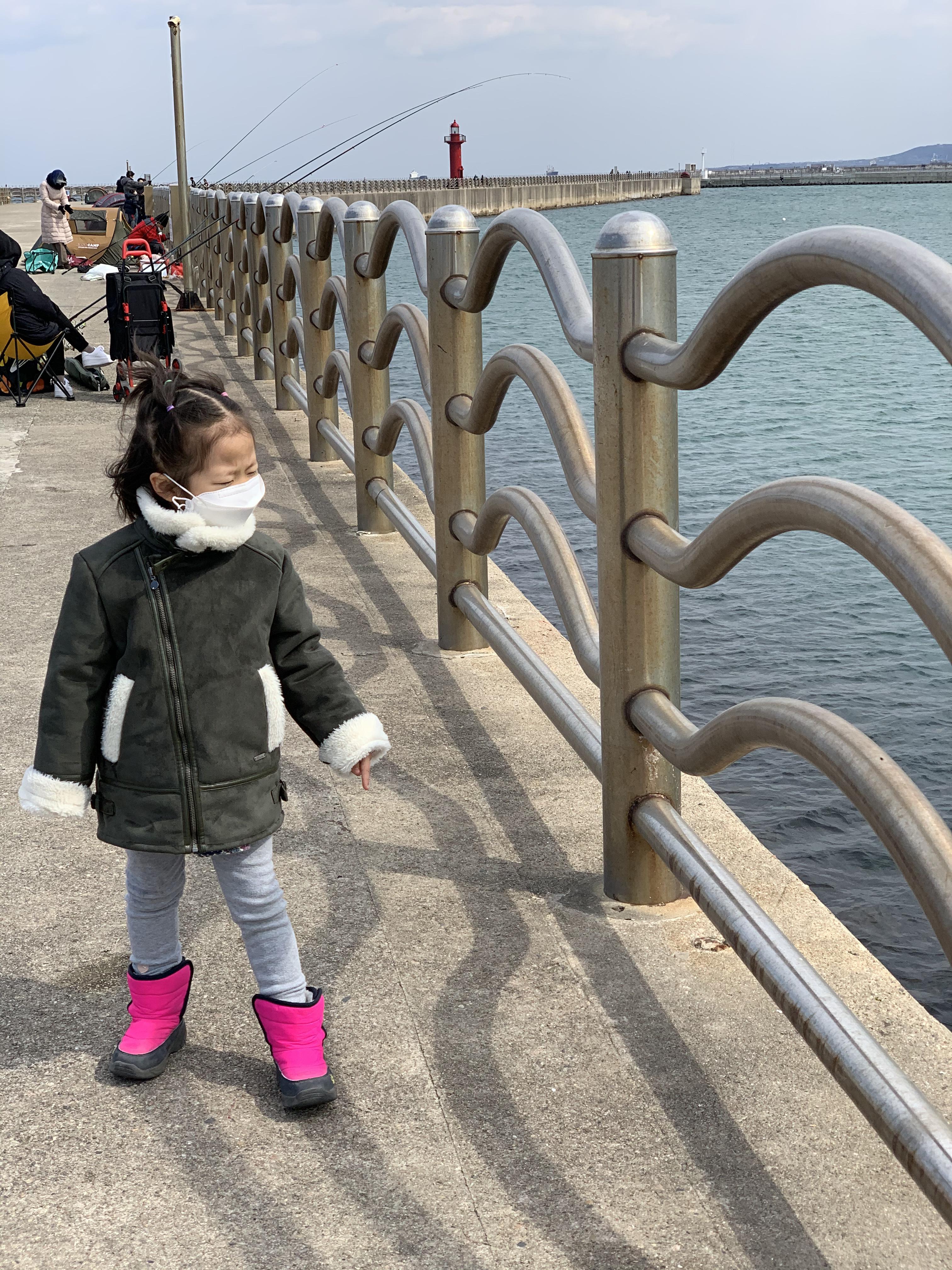 통통이는 낚시에도 관심이 가고 방파제에서 보는 바다도 마음에 드는지 혼자서 바다 구경도 한다.