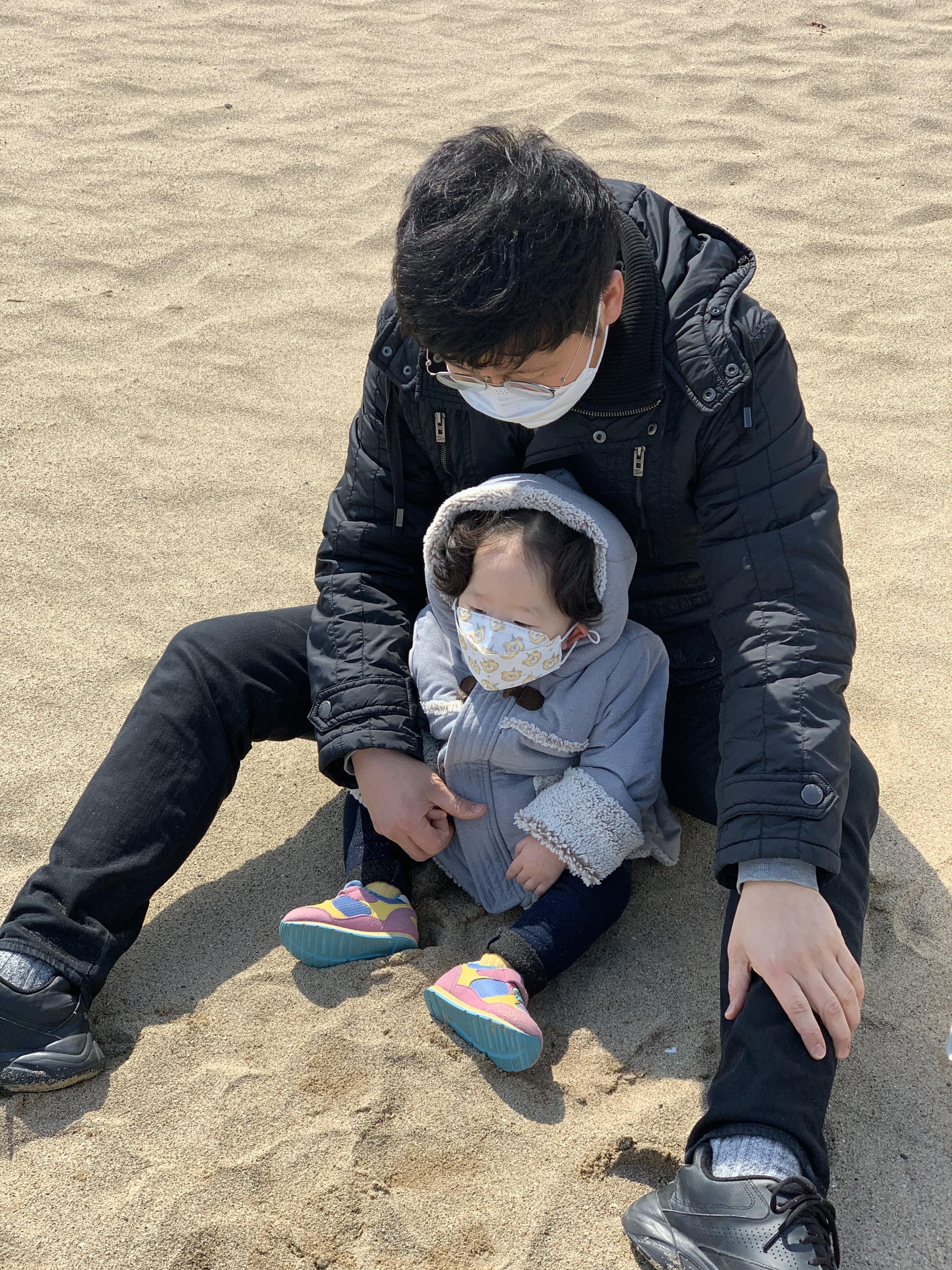 통통이는 출발 전 자기는 바다에 들어가서 수영을 하겠다는 야심찬 포부를 밝히더니 막상 바다에 도착하니 발이라도 빠질까 싶어 이리저리 폴짝폴짝 뛰어다닌다.^^
