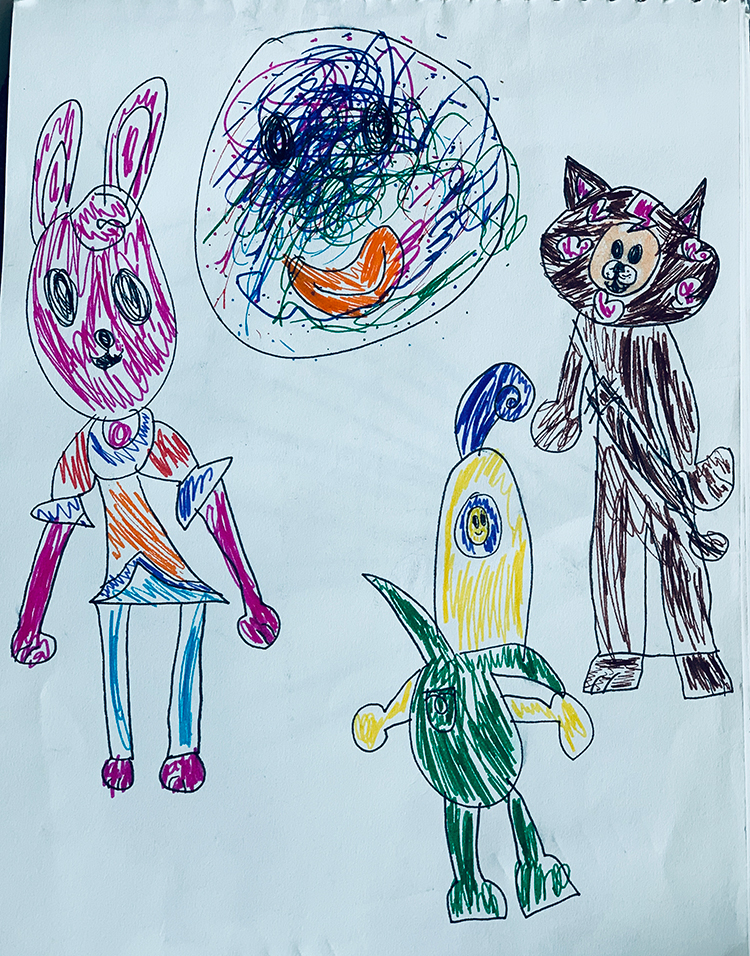 "변신 전 루시, 볼트, 새미, 맥스이다. 루시를 가장 좋아하는데 세미를 가장크게 그래서 의외이다."
