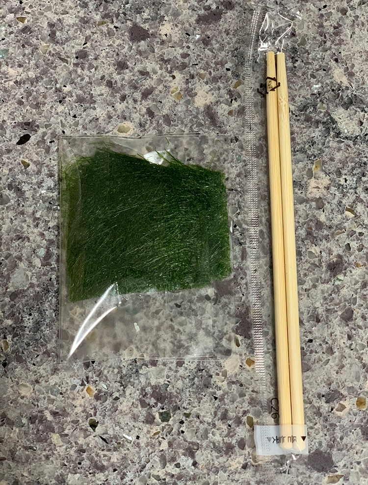 도시락에 둘러진 종이밴드를 제거하고 나면 감태와 젓가락이 붙어 있었다.