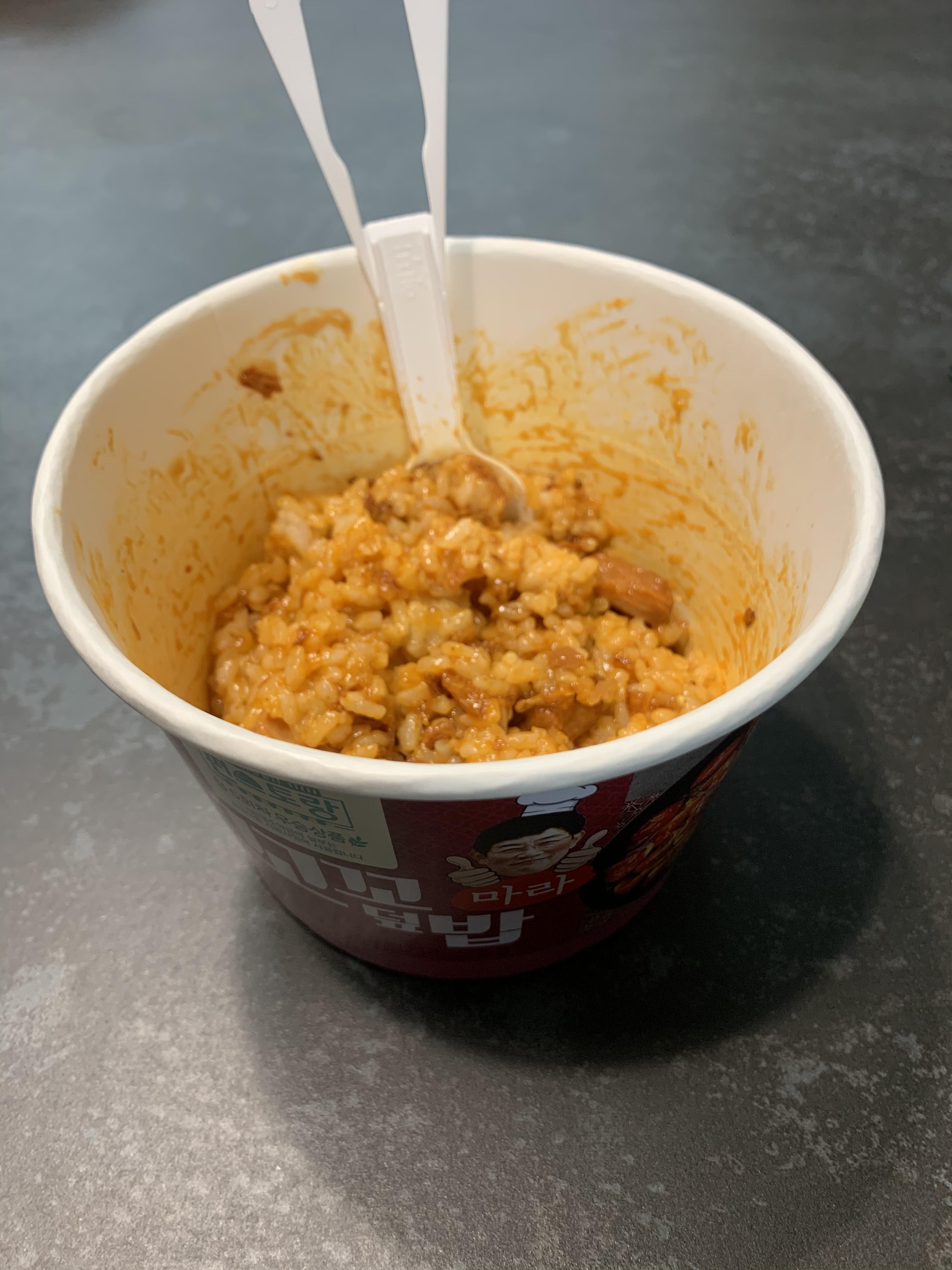 구성 : 햇반, 크리스피어니언, 마라닭고기, 마라마요, 숟가락