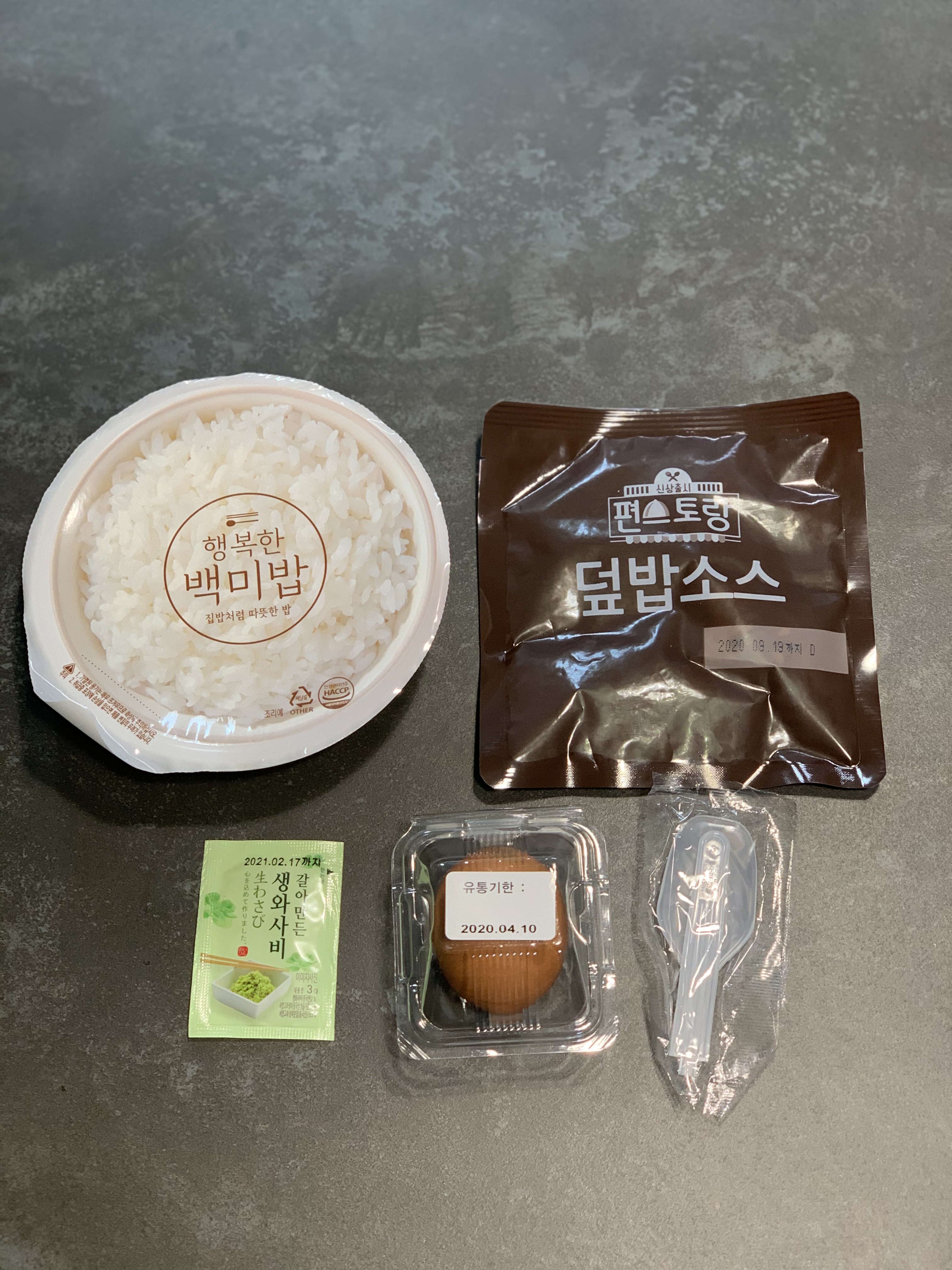 구성 : 백미밥, 덮밥소스 , 생와사비, 수란, 숟가락