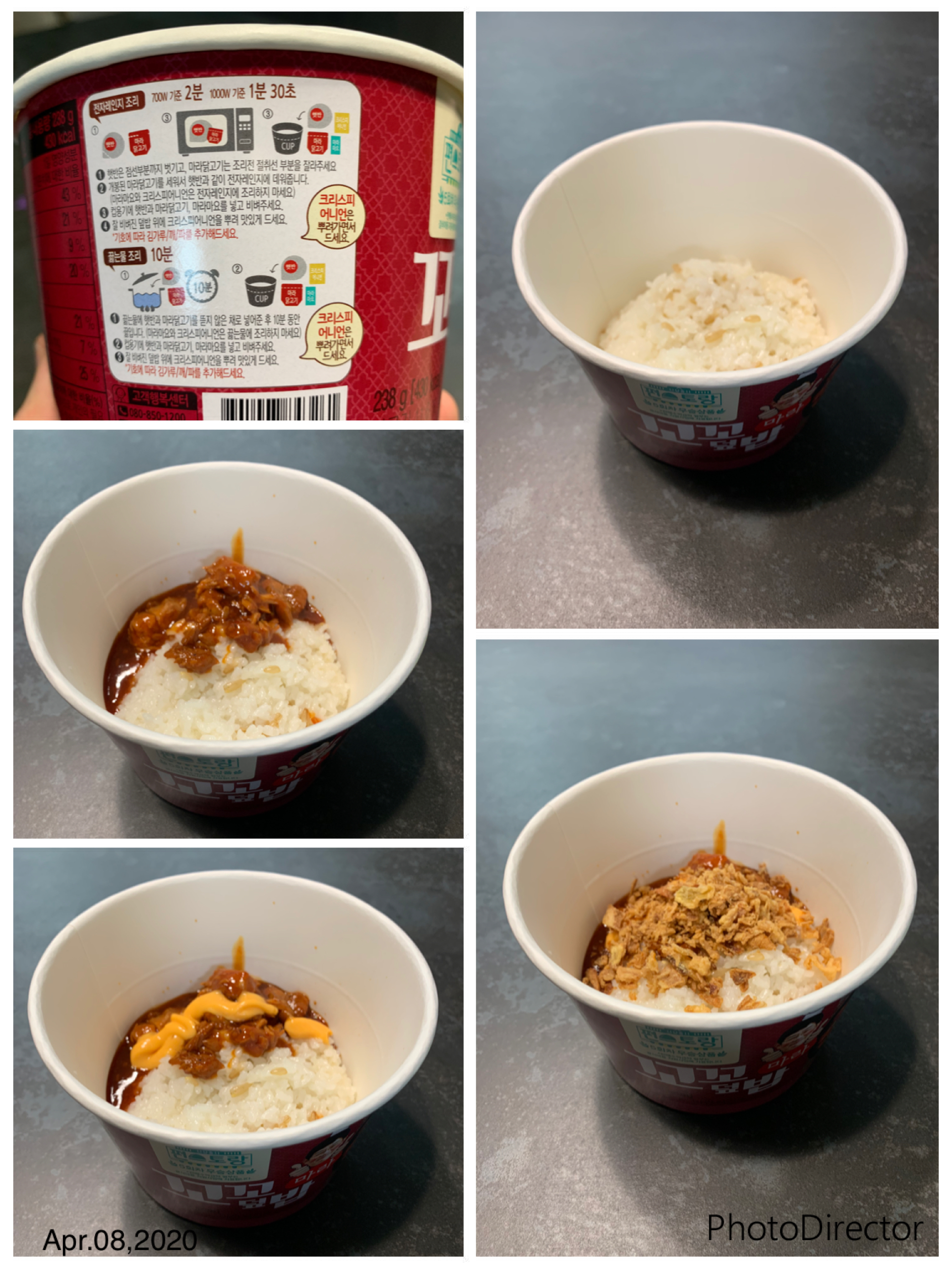 1. 컵에 밥과 소스를 넣고 전자렌지에 돌려준다.