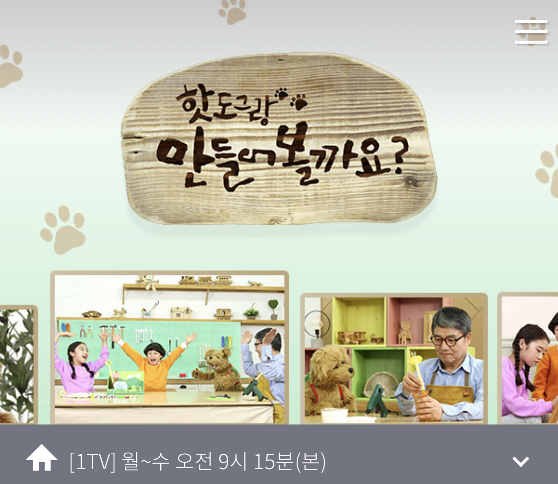 강아지 핫도그와 두 친구들이 할아버지와 함께 만들기를 하는 프로그램이다.
