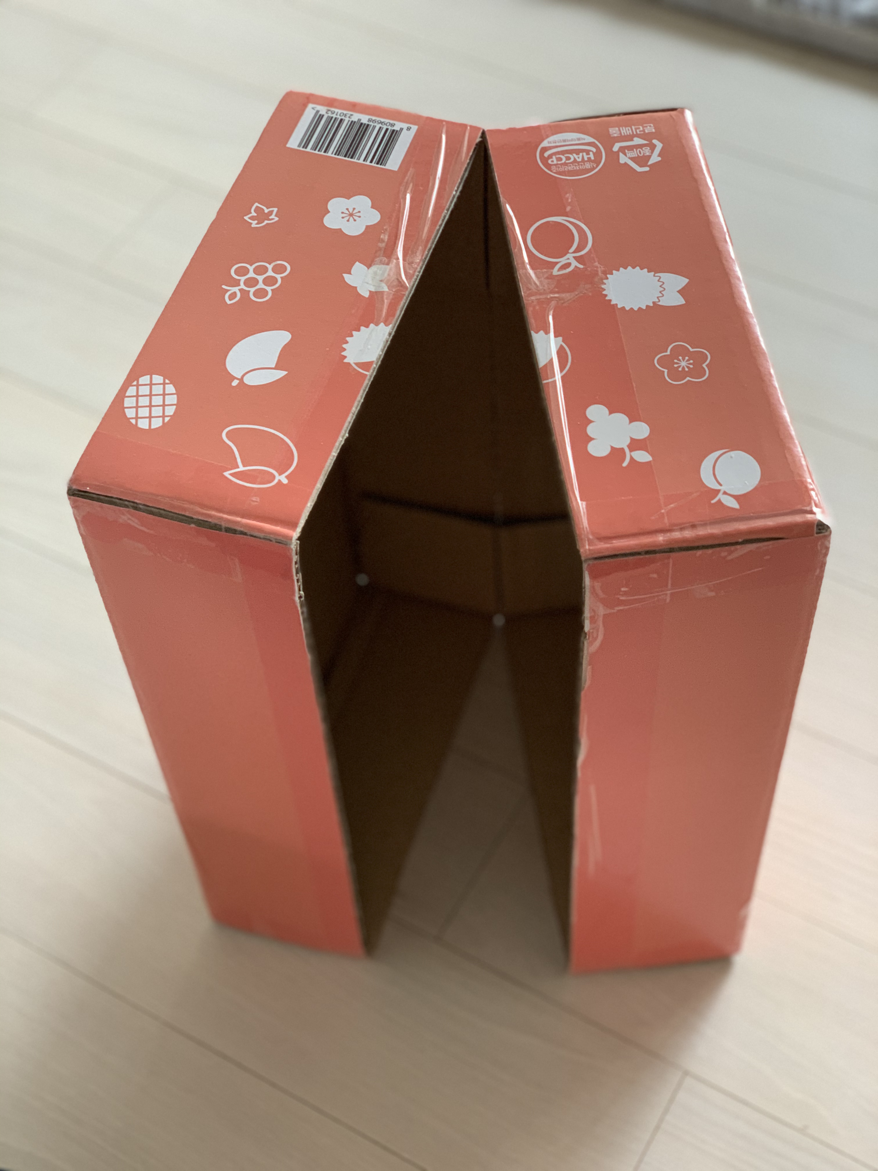 엄마는 곤약박스를 잘라 겉면을 포장해 주었다.