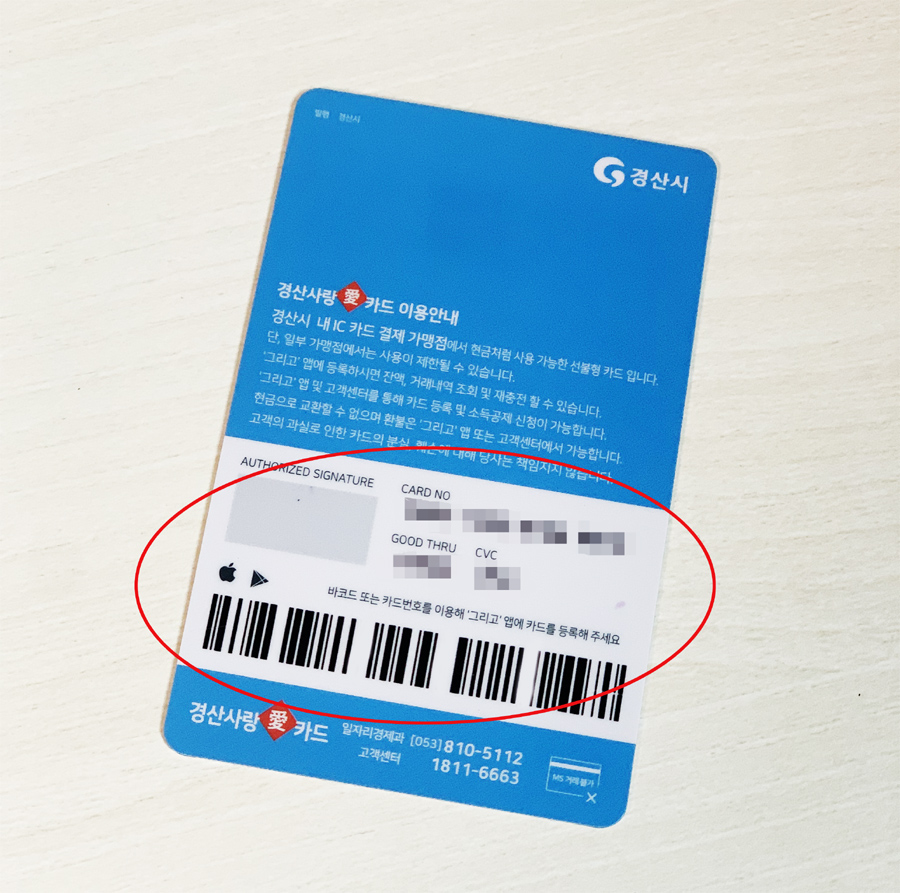 경산시에서 발행하고 경산시 관내에서만 사용할 수 있는 선불식 카드로서 만14세 이상 누구나 발급 가능하며 1인 월40만원[그리고 앱에서 70만원까지 가능], 연간 400만원 이내 구매 후 사용하실 수 있습니다.