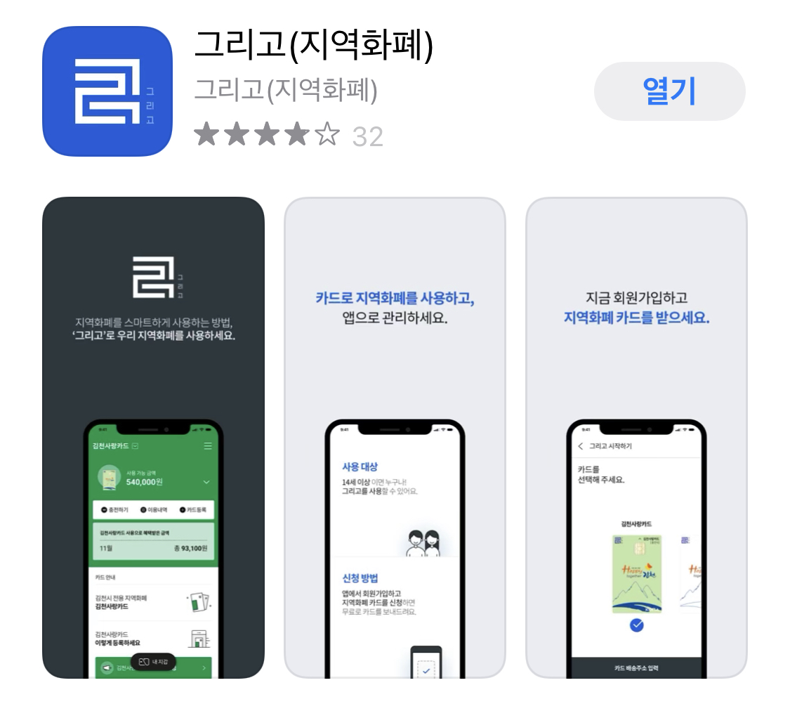1. 앱스토어나 구글플레이스토어에서 "그리고"(지역화폐)앱을 다운 받습니다.