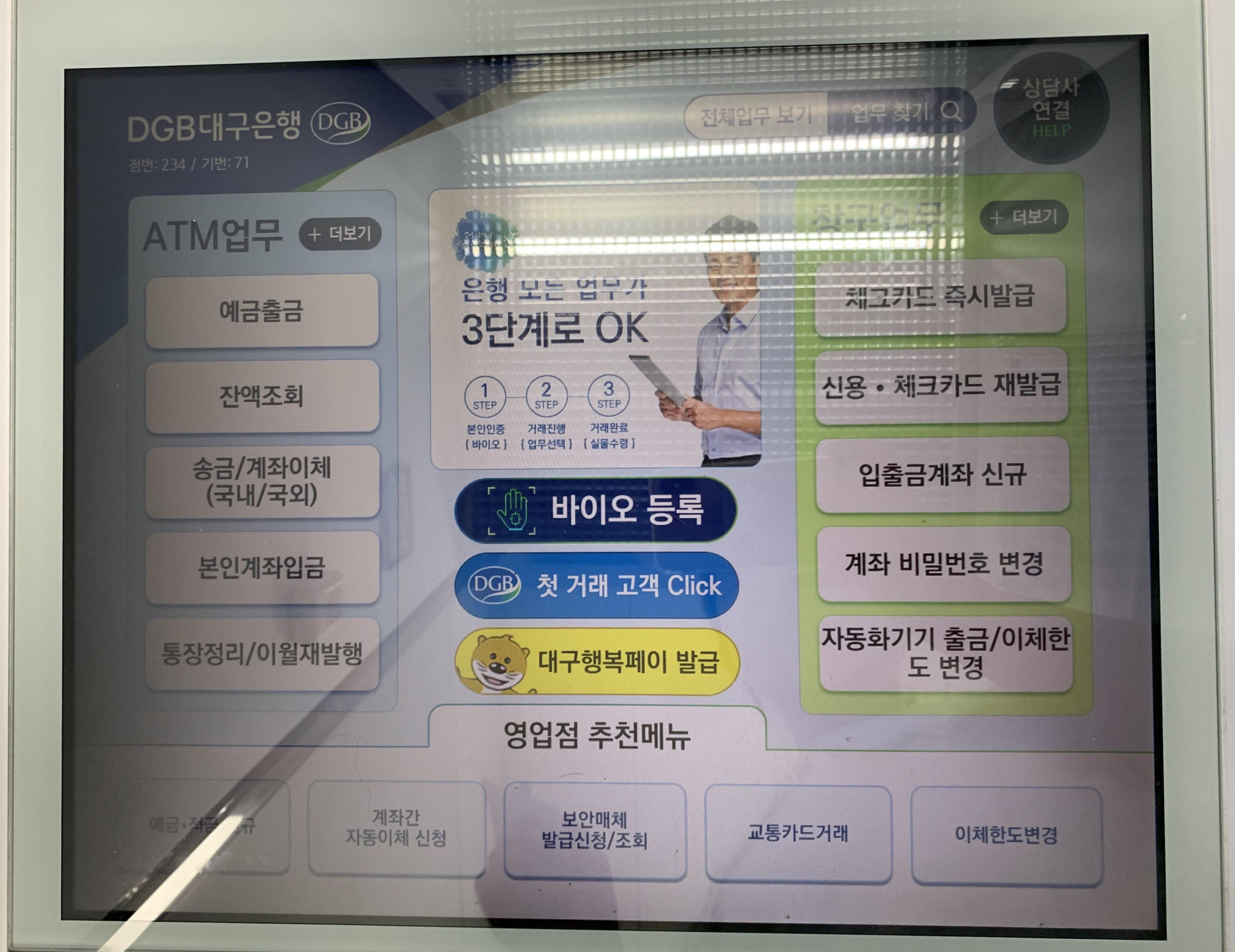 시지 지역에 대구은행이 몇군데 있었지만, 다른곳은 대구행복페이가 발급 중단이 된 상태로 다시 여기저기를 돌아다니다가 말로만 듣던 디지털셀프점을 찾을 수 있었다.
