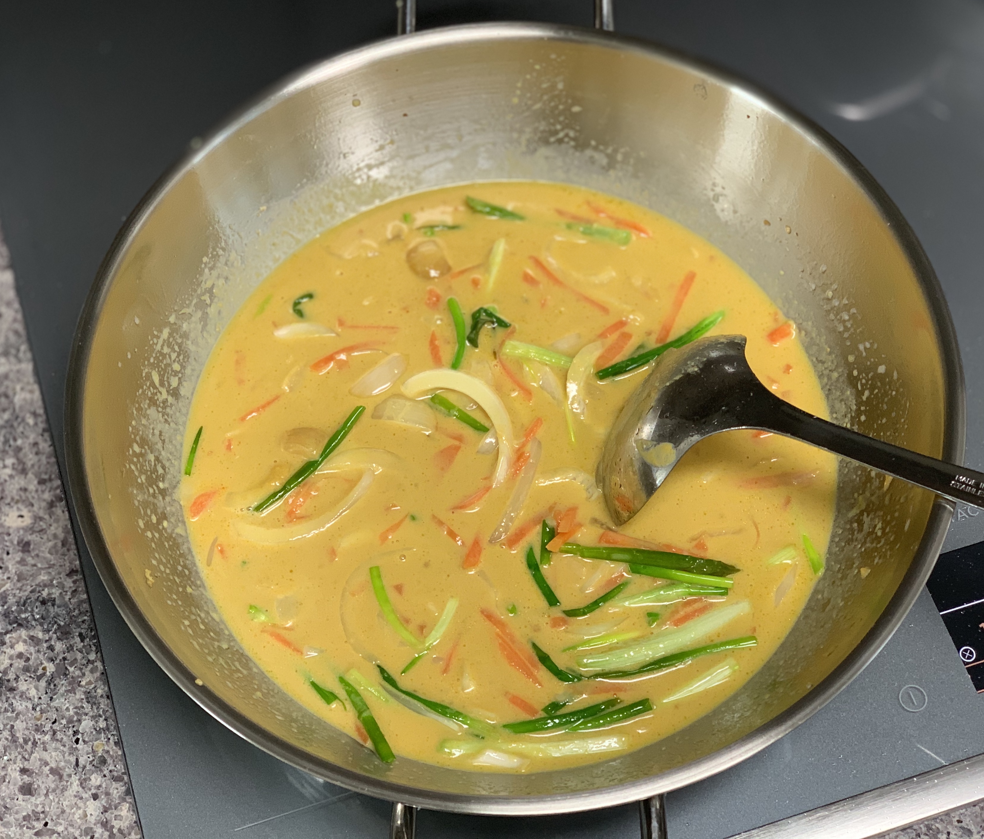 볶아진 야채에 옐로우 커리 소스 넣고 볶다가 코코넛밀크를 넣고 끓여 준다. 센불에 탈수 있으니 중간불로 조절. 내 입맛에는 간이 맞아 피쉬소스는 넣어 주지 않았다.